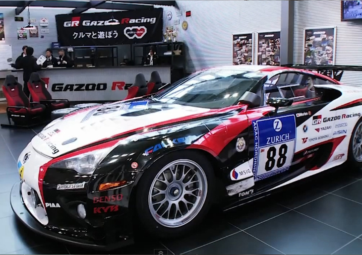 東京お台場 MEGA WEB にオープンした"waku-doki"ゾーンには、サーキットのピットやこだわりの自宅ガレージをイメージし、クルマを「持つ」楽しさを想像できる空間を再現したGAZOO Racing ガレージがあります。ガレージには、世界一過酷と言われるドイツのニュルブルクリンク24時間耐久レースの参戦車両であるLEXUS LFAやTOYOTA 86を展示しています。