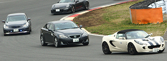 インストラクターさんの車を後ろから追走し、正しいライン取りを学びながら、午前中に練習したブレーキングやコーナリングを実践するものです。