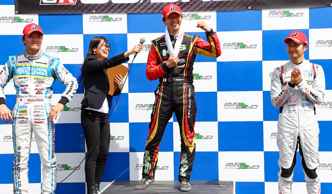 「優勝してもちろん嬉しいのですが、ホッとしたという気持ちもあります。今回のオートポリスでは練習走行から調子はイマイチだったのですが、予選でそれまでのタイムを大幅に更新するトップタイムを記録できました。ドライバーの実力もマシンの差もないワンメイクレースなので、ポールポジションを獲得できたことは優勝の大きな要因ですね。決勝レースは、ほぼバックミラーを見ながらの苦しいレースでした。ですが、佐々木選手が仕掛けてきそうなコーナーは押さえつつ、タイヤもマネージメントしていました。2年前のオートポリスでは最終周に逆転されたこともあり、終盤にプッシュできる状態を作っていました。予想通りの展開で、後半にタイヤのパフォーマンスが残っていて、佐々木選手を押さえることができました」