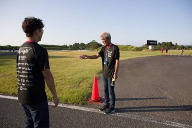 「早めにアクセルを踏み込んでしまうと、フロントタイヤのスリップアングルが増すことになり、抵抗が増えてしまいます。特に最終コーナー立ち上がりでのアクセルオンは我慢してくださいね。タカユキさんは踏める人だから踏んでしまいますよね」そう言って笑った。