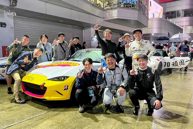 メディア対抗ロードスター耐久レースに参戦しました。富士スピードウェイを無給油で走り切るには、緻密な燃費計算と、4名のドライバーの安定した走りが欠かせません。最終的には、入賞を逃す7位でゴールを迎えましたが、純粋に速さだけを追求するレースとは異なり、エコランにはエコランならではの楽しみがありますね。