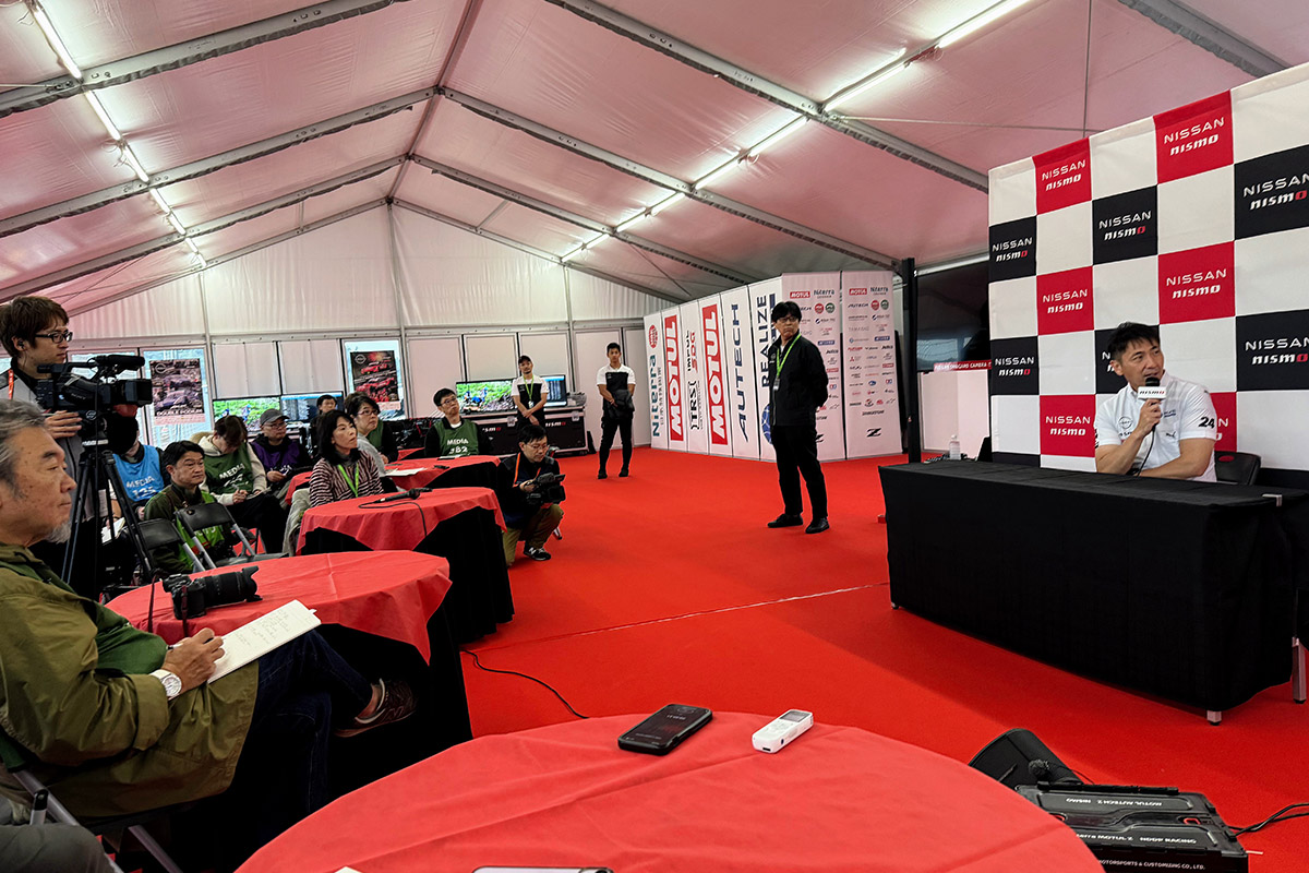 そして、この日はライバル陣営の松田次生選手のSUPER GTを卒業する記者会見があるというので、ニスモ陣営のホスピタリティにお邪魔しました。