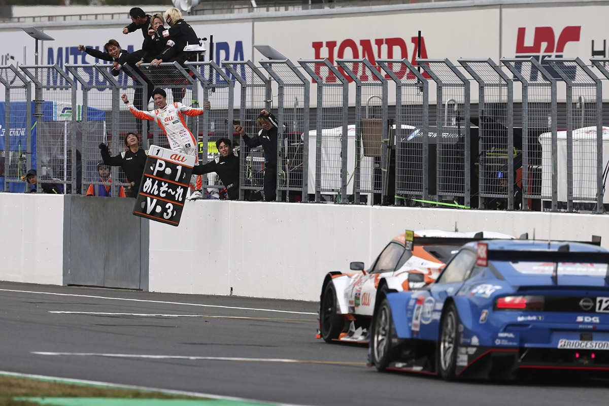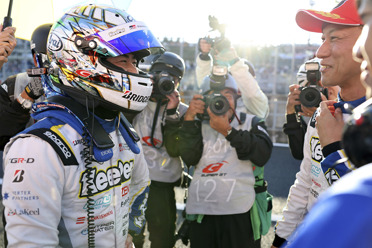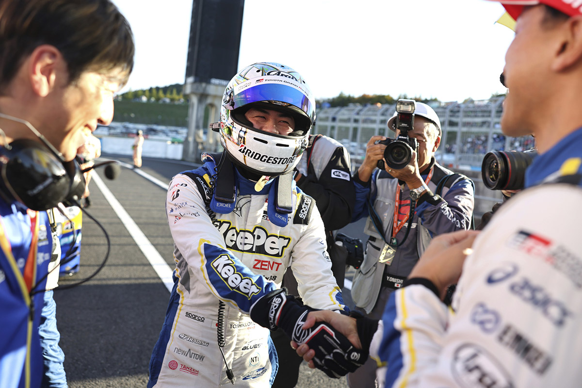 「今季は、ノーウェイトのレースの予選が全て2位でした。開幕も富士のスプリント2つも2位。もてぎも2位。レースで勝てればそれで良いのですが、心残りでもあります。今日のレースは早めにトップに出られれば良いなと思っていましたが、坪井選手が死ぬ気で行ってくれて素晴らしかったです。ヤマケン(山下健太選手)が途中であのような展開(12号車と抜きつ抜かれつ)になるのは、タイヤ的に織り込み済みでしたが、彼ならしっかり抑え切ると確信していました。坪井で抜いてヤマケンで抑えるというのが、うまい具合に機能しました。今季は、自分しか担当変えがなかったんです。メカニックも変わってなく。それでタイトルを取れて良かったです。