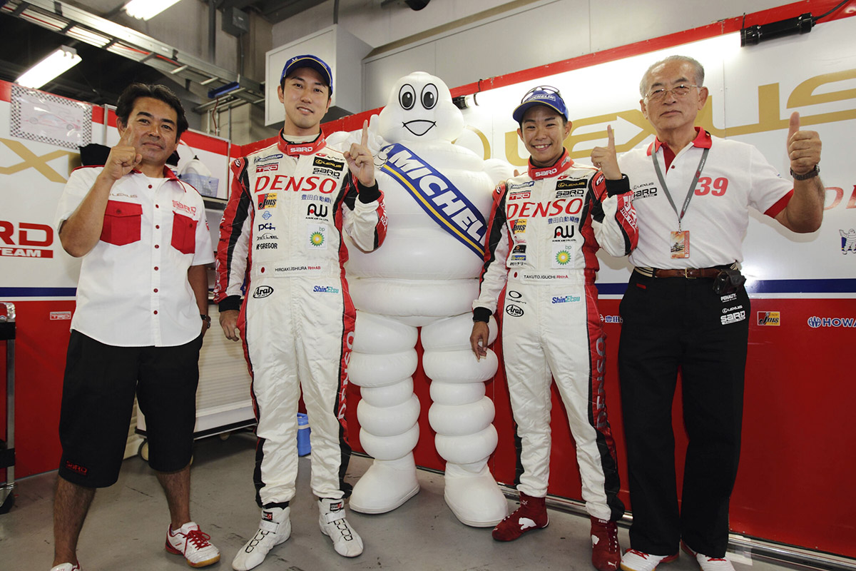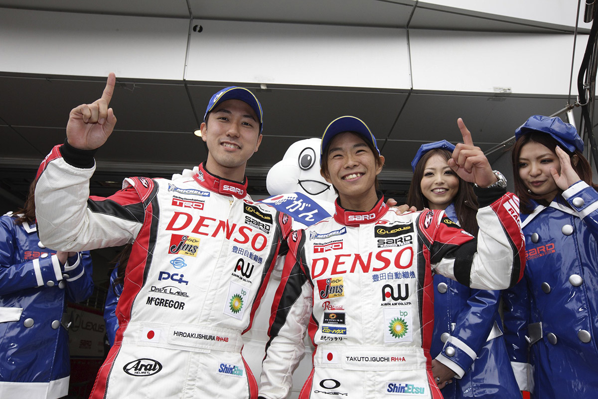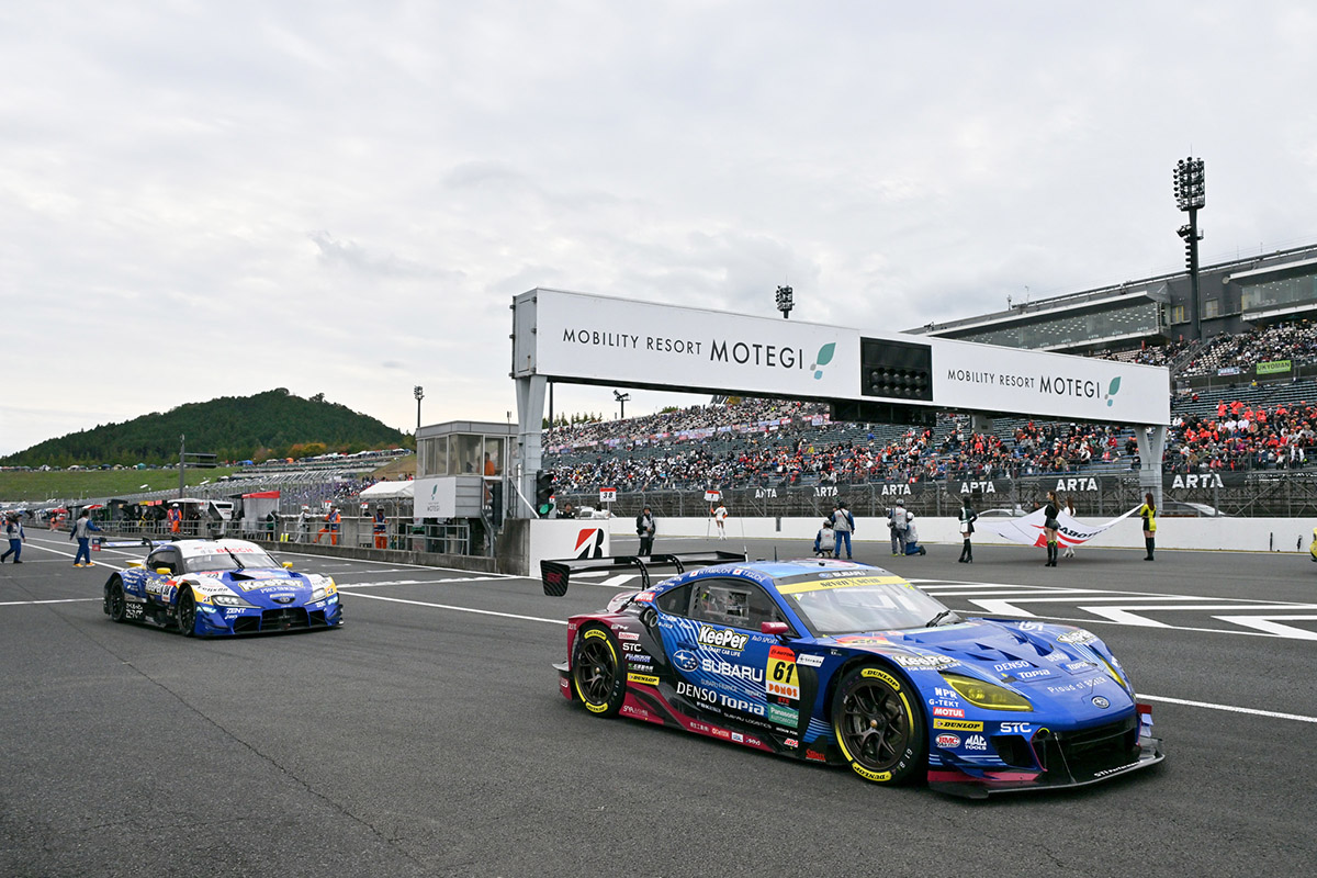 GT300クラスもドラマ仕立てのようなリアル。16回目のポールポジションの61号車 SUBARU BRZ R&D SPORT山内英輝選手。こちらも、スバルの二人がEJ20のエンジンでのラストランの花道を作りました。井口卓人選手は、GT500時代に石浦くんと39号車で、2011年39号車 DENSO SARD SC430で1年だけコンビを組んでますね。