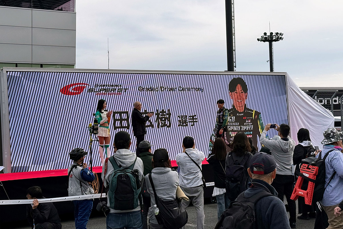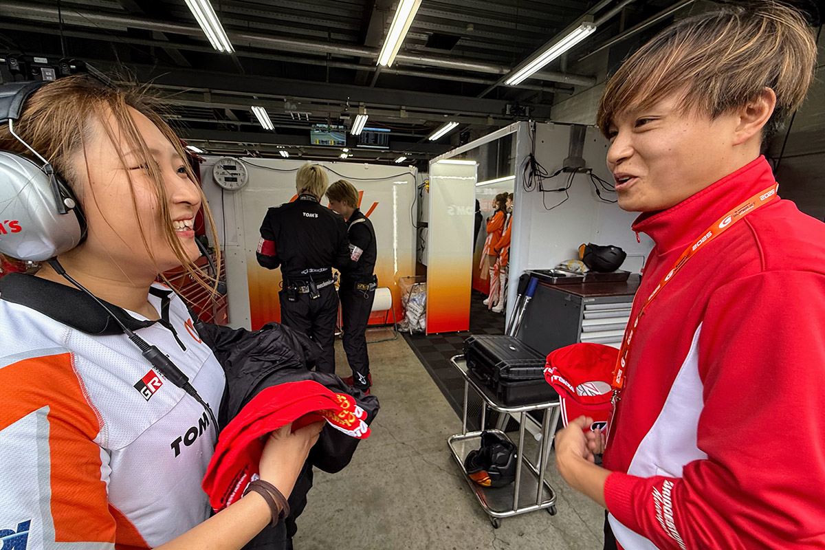 TGR応援席に行ったんですね!他メーカーがやっているのですが、なかなかTGRでは根付かず…。17年くらい前の担当の方がトライしてドライバーを集めてくれたのですがね。次のレースでは忘れてしまうというか、現場でこれまでと違う動きをすることはとても努力のいることでして。しかもみんなチームが違うので、簡単そうに見えてこのアピアランスは、なかなか難しいことになってしまったんですよね。石浦くんの卒業もあったからかな。来年は開幕戦からファンのみなさんの前に行けたらいいなと思います。