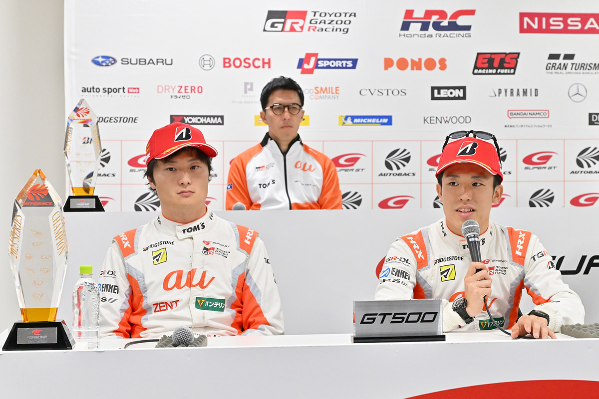 そこからアウトラップの勝負となるのは自覚していました。1号車は、2位でもタイトルだったのでそこまで賭けに出る攻めはしないだろうと思っていたので、我々のチャンスはアウトラップしかないと思って、人生マックス値でプッシュしました。攻めすぎと見誤りもあって、タイヤを感じ取る力を欠いたと思います。気の方が空回りしちゃいました。タイヤが温まっているだろうと判断。普段はもっと温めに行くと思いますし、温め方よりも速いラップというのを意識してしまいました。石浦選手が3番手になった瞬間、間に12号車が入った時に焦りが生まれてしまいました。言い訳になっちゃいますけど、攻め方がいつもよりも冷静さを失った感じですね。その後はロックアップしてタイヤもワイヤーが出ていた状態で走っていたので…。来季は誰と組むのかわからないけど、戦える体制を作ってタイトルを取りに行きます!」