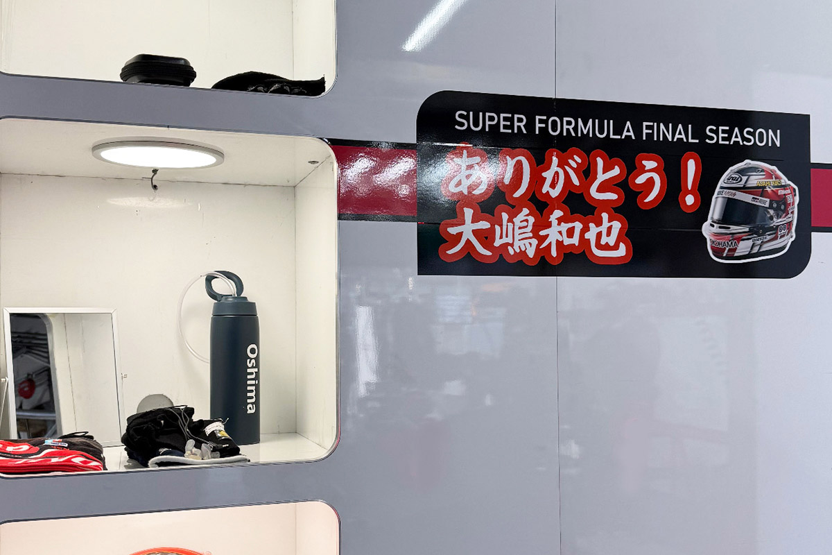 こちらは、ルーキーレーシングのピット。大嶋和也選手が最後となるのでこの光景も当然ラスト。大きなステッカーが貼ってあってラストランの準備もしている感じですね。このステッカーは、本当のラストランの第12戦の日曜日、マシンにも貼られていました。それはのちほど。