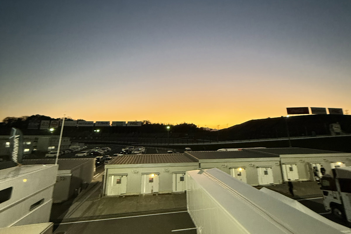 明日で終わりか〜のミックスゾーン終わりにパチリと。マジックアワーは肉眼で見た方がとてもきれいでしたけどね。今季のサーキットの現場も、わたしはあと一日となり、やれたことがたくさんあったのに、今季は何か遠慮したこともたくさんあったと、ふと振り返って黄昏ていました。ちょっと反省の多い今季だったなあと思いながらホテルへ帰還しましたね。あそこの場面でこうしたら良かった…、予選日の夜ってそんなことばかり思い出すんですよね。明日はもう少し頑張らないとってね…。で、睡眠時間3時間の連続だったので(長年現場に来ると眠れないんです、仕事が気になって)、少し明け方眠れたようで5時間ほど寝られました。