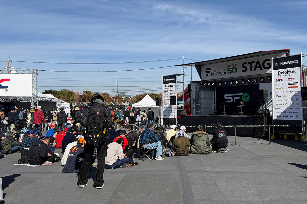 さて、レースウィークですが、今回も盛りだくさんのコンテンツをJRPさんが準備をしていました。レース中心で動くことにして追いかけきれませんでしたが、秋晴れで寒さもなくラストラウンドにふさわしい観戦日和となって、素晴らしいレースウィークとなりました。観戦者数も、3日間で6万9200人!(金曜日5200人、土曜日2万8000人、日曜日3万6000人)これには驚きです。2025シーズンも、26万3900人を動員し過去最高となりました。ほんと以前と違って場内がめちゃくちゃ混んでいて、増えているのを肌で実感したシーズンでしたね。