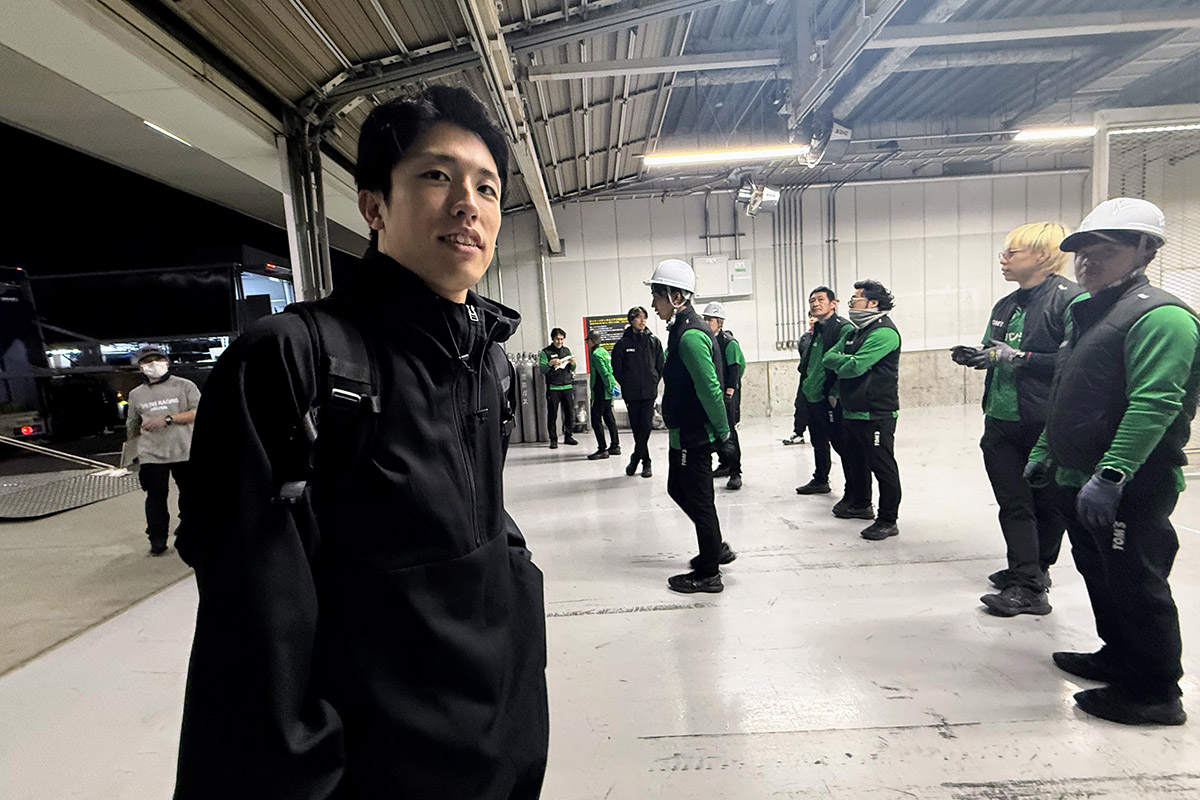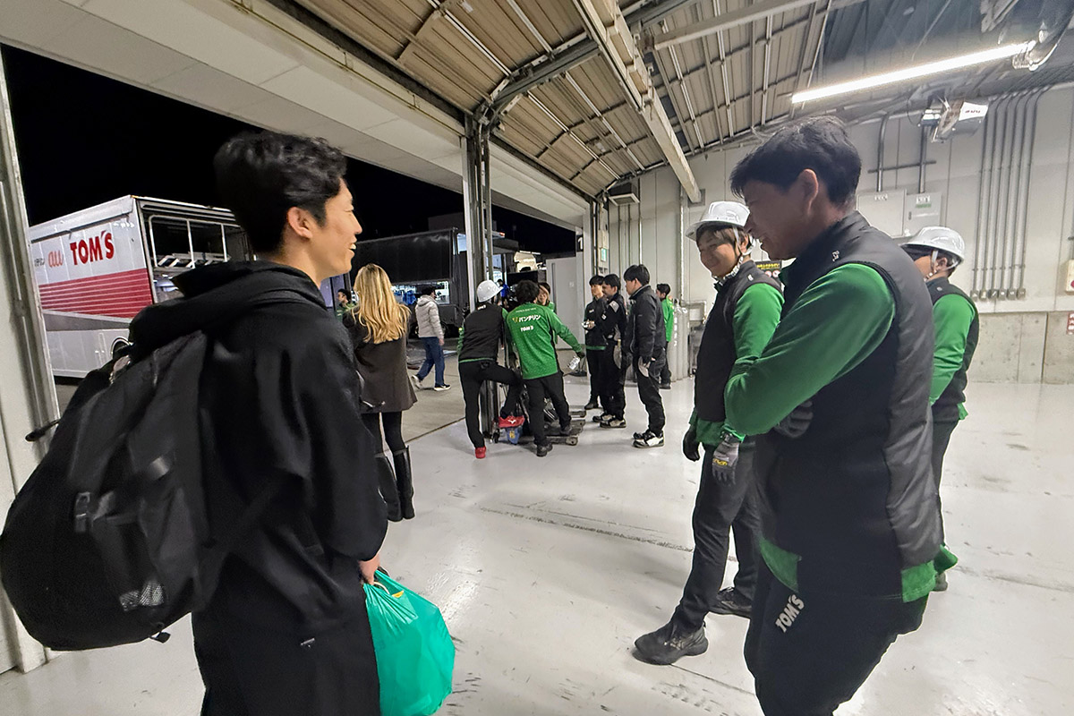 しばらく話をしたあと、「このエンジニアさんはほんとすごいですよ」と坪井くん。そして小枝くんが、「このドライバーがすごいんだよ」と、お互いを鼓舞。SUPER GTの最終戦でも同じシーンがあってデジャブ。