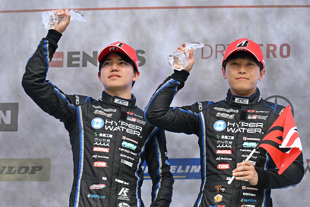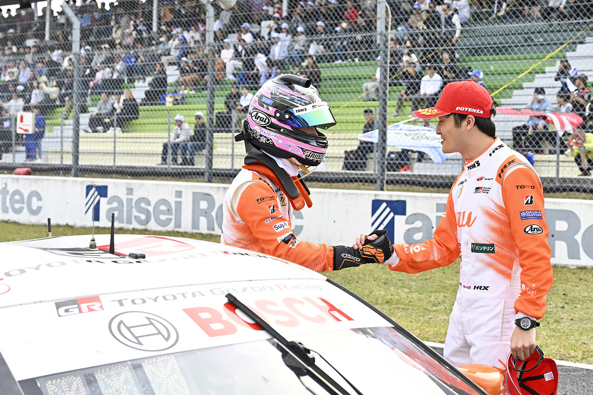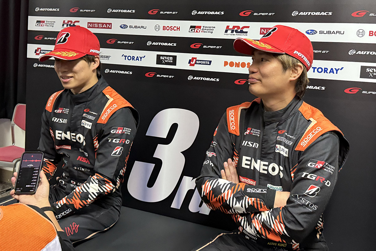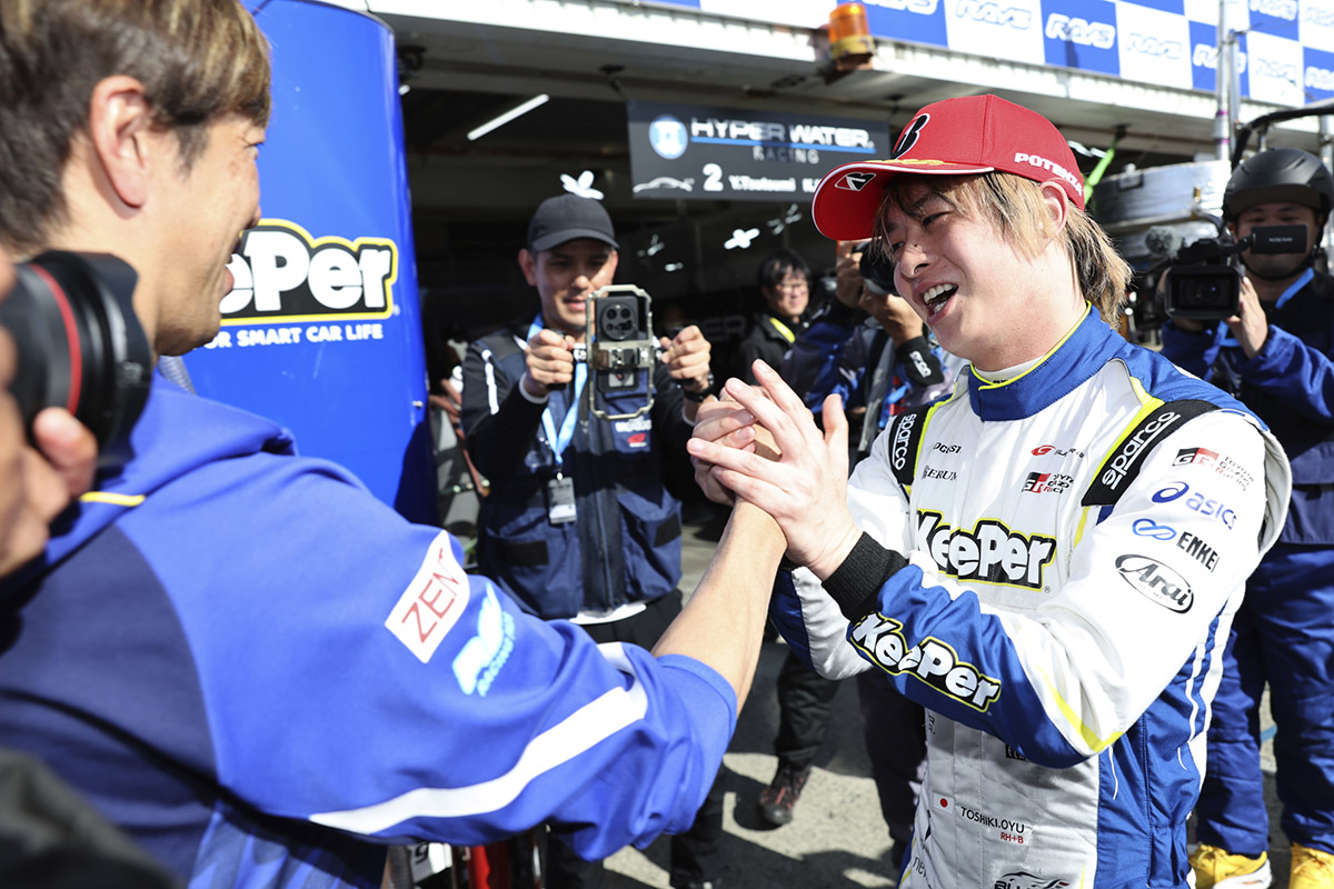 「二人ともとても速かったですね。人気だけが一人歩きして、結果が伴わないとという心配をして来ました。しかし、よくやってくれました。とても立派でした。大湯は今、スーパーフォーミュラも含め(前週の開幕戦)、日本一速い男だよね(目の前にいた大湯選手がお父さんに褒められてとてもうれしそうな顔をしたのをしっかり拝見)。これからの二人が楽しみです。ただ、利徠斗がおもしろいから、みんながそっちを応援してくれるので、大湯の人気が下がるのではないかと心配しています(笑)。みなさん応援ありがとうございました!」