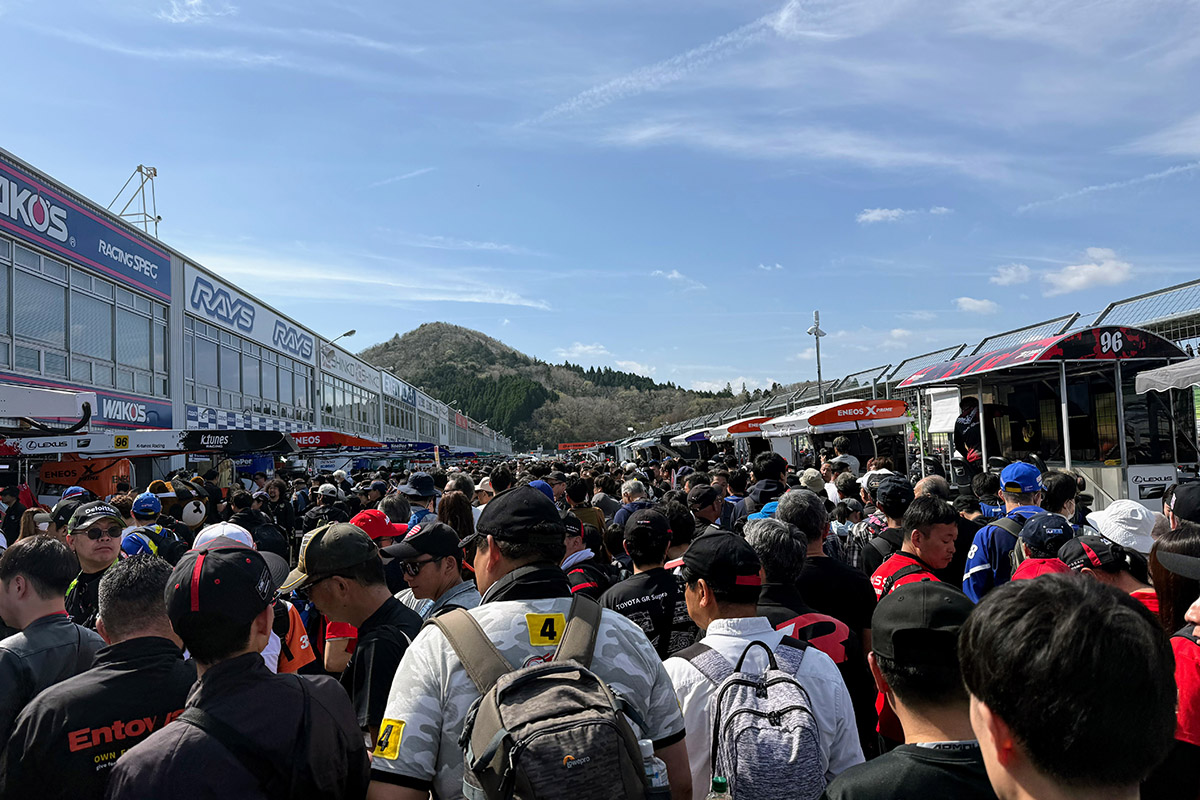 グリッドウォーク。SUPER GTはやっぱり華やかですね。ホームストレートは屋外ですから当然開放感があるにもかかわらず、満員電車のように人で溢れかえっていました。