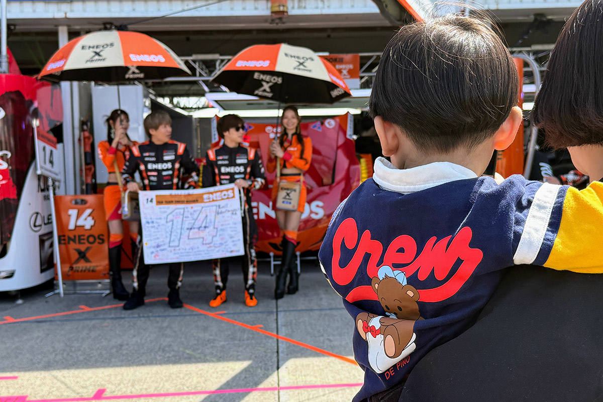 これ、次男もかわいいけどちゃんと長男を褒めた監督のお気持ちが出ていて、わかってるなあと思いました。話している時に、大湯くんに続き利徠斗くんもチームに戻って来たのですが、凹んでいたのかうなだれたままピットに行ってしまいました。それを見て、監督が“まるで悪いことしたみたいだな。あれはダメだ”と、しっかり仕事をした利徠斗を褒めたいのになんだよーと。チームも撤収作業中でバタバタして来たので、私はその場を去りましたが、きっとちゃんと褒めたと思います。立川監督は、チームの成績不振を理由に現役を退いたゆえ、幸先の良いシーズンのスタートを絶対心から喜んでいると思いますね。