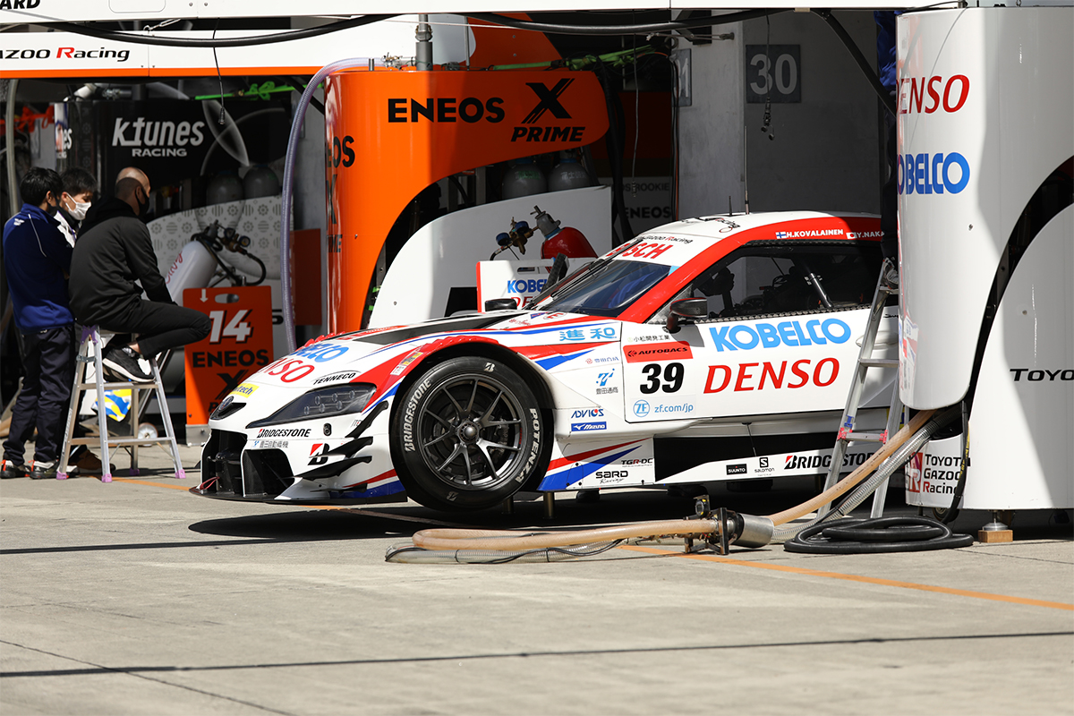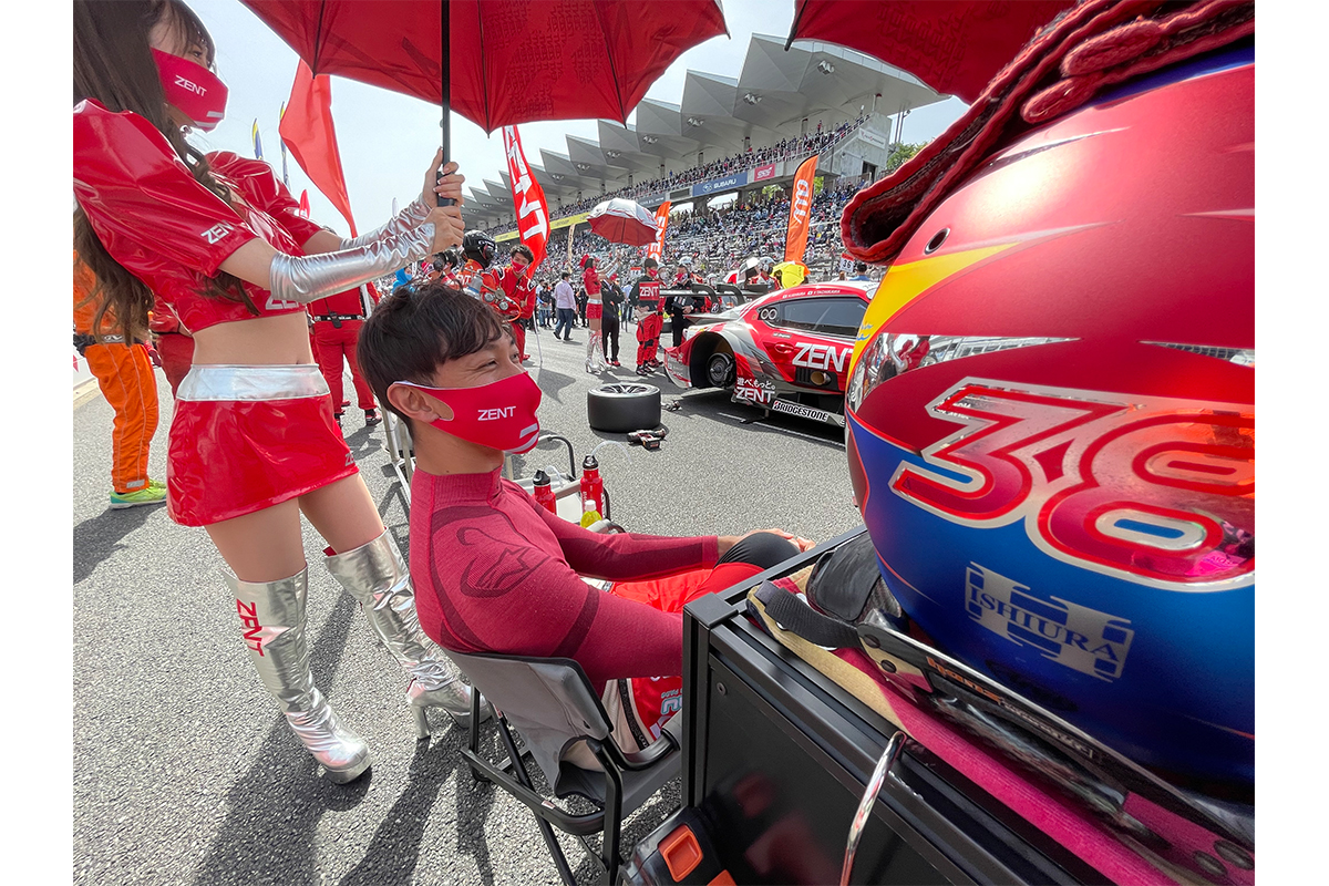 予選3番手からスタートの38号車 ZENT CERUMO GR Supra。やる気まんまんだったスタートドライバーの石浦宏明選手。グリッドで話したのですが、「久しぶりに前からだから頑張ります」ととても良い感じだったんです。やっぱり富士と言えば「38」ですしね。うれしくなったのに…。