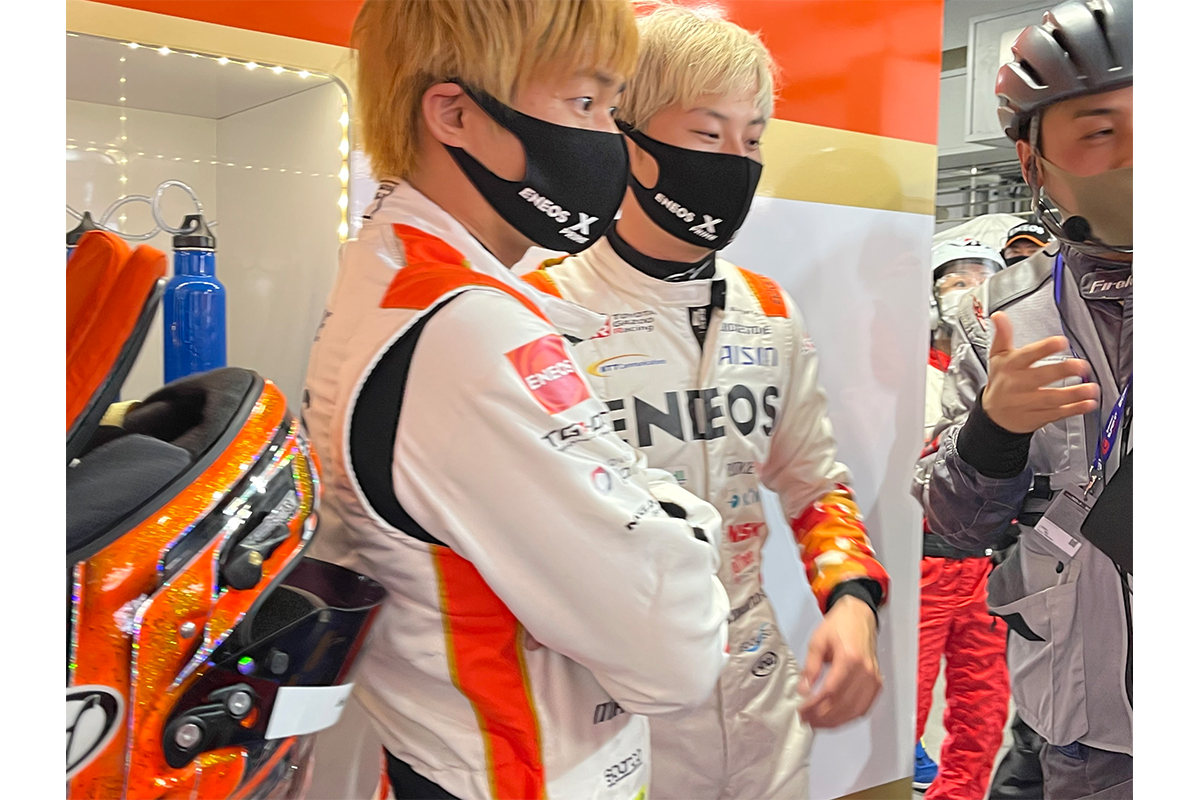 予選のセッションを振り返ると、Q1をトップで返ってきたのは、14号車ENEOS X PRIME GR Supraの山下健太選手。サクセスウェイト40キロでトップタイム?と返って来た健太を見て、固まる大嶋和也選手。後輩のアタックに驚きの表情でした。そして開幕戦に続き富士でも!とチームはしっかり2連勝を描いていましたね。