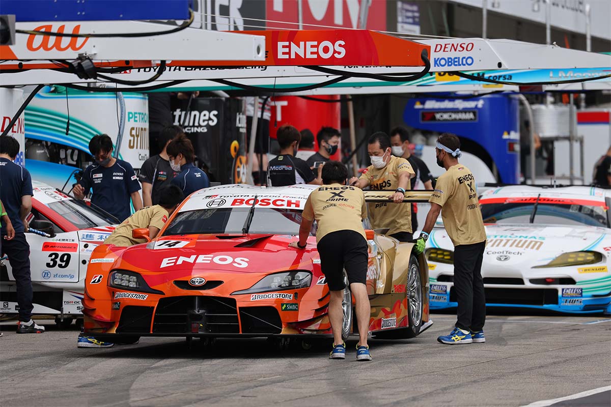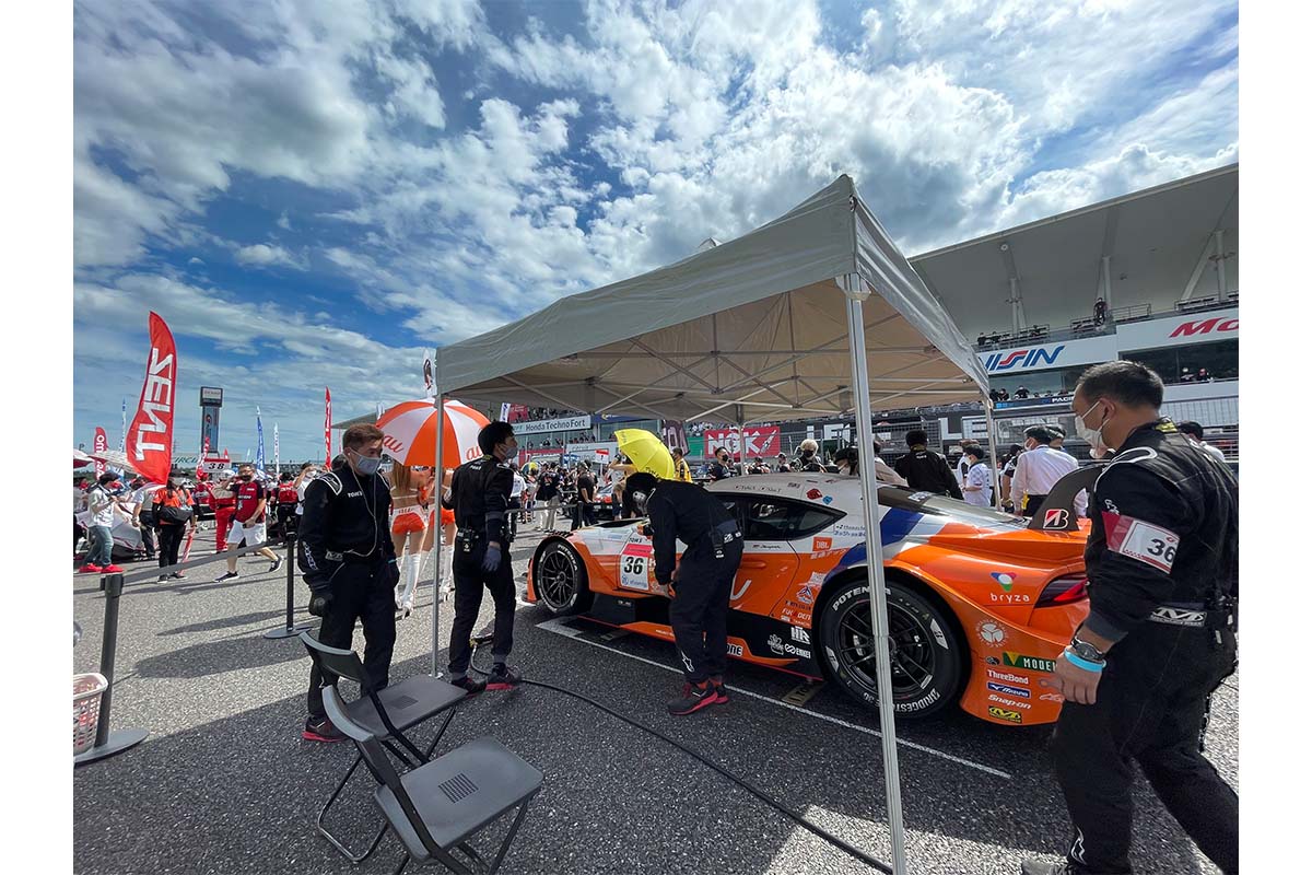 こちらもグリッドにて、36号車au TOM'S GR Supraのグリッドにテント登場。