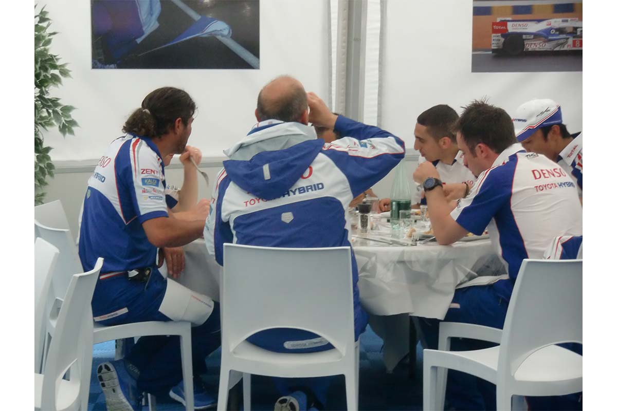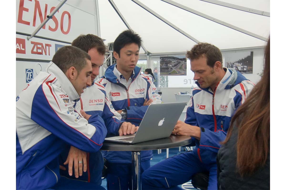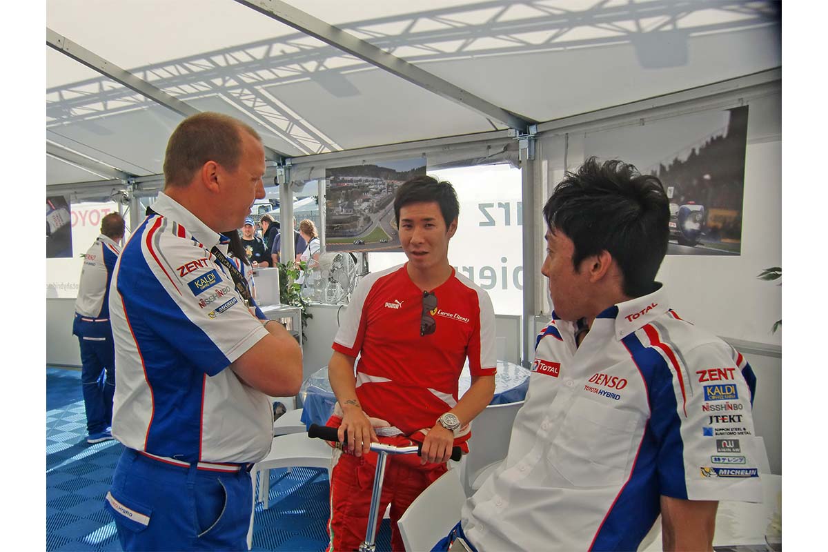 今年ル・マンウィナーとなった小林可夢偉選手は、この年はフェラーリで参戦していました。トヨタ自動車がF1に参戦していた当時、サードドライバーでしたから、TMGスタッフは知っているので、フツーに溶け込んでいました。トヨタでモータースポーツ活動を再び始めた時はとても感激したのを記憶しております。