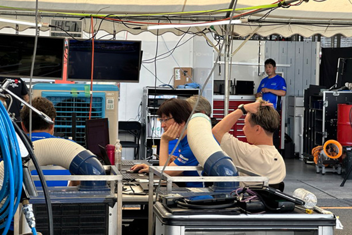 この日は、もう暑さで参ってしまってほぼ情報収集だけで早めに撤収。ピット周りはもちろんしていますが暑すぎです。歩いている私が倒れたら運べないからか(笑)、みんなが心配してくれました。昭和生まれは残念ながら強すぎるという話になりましたけどね。ベテランほど倒れないとか、そんな話をしつつ、各ピットの暑さ対策がハンパない。