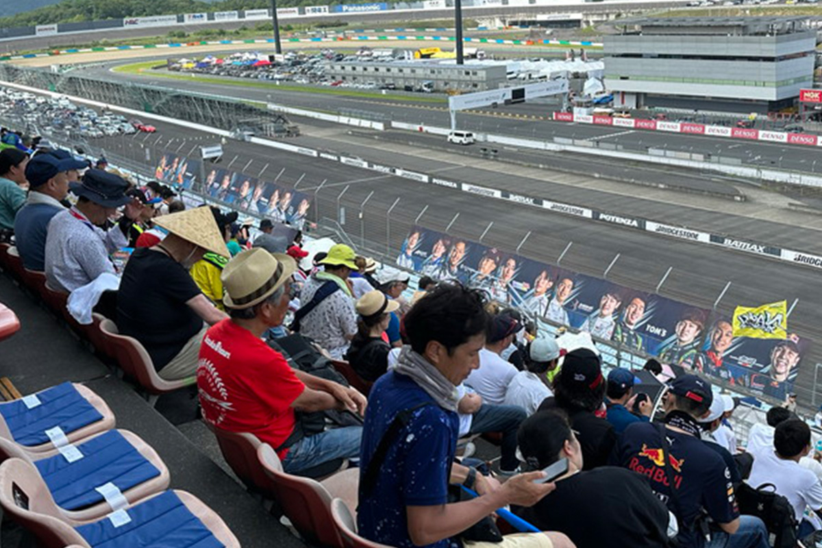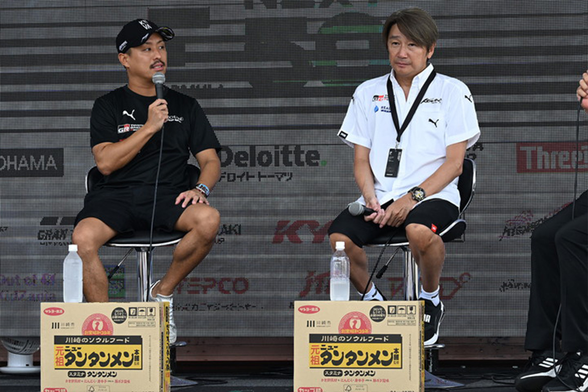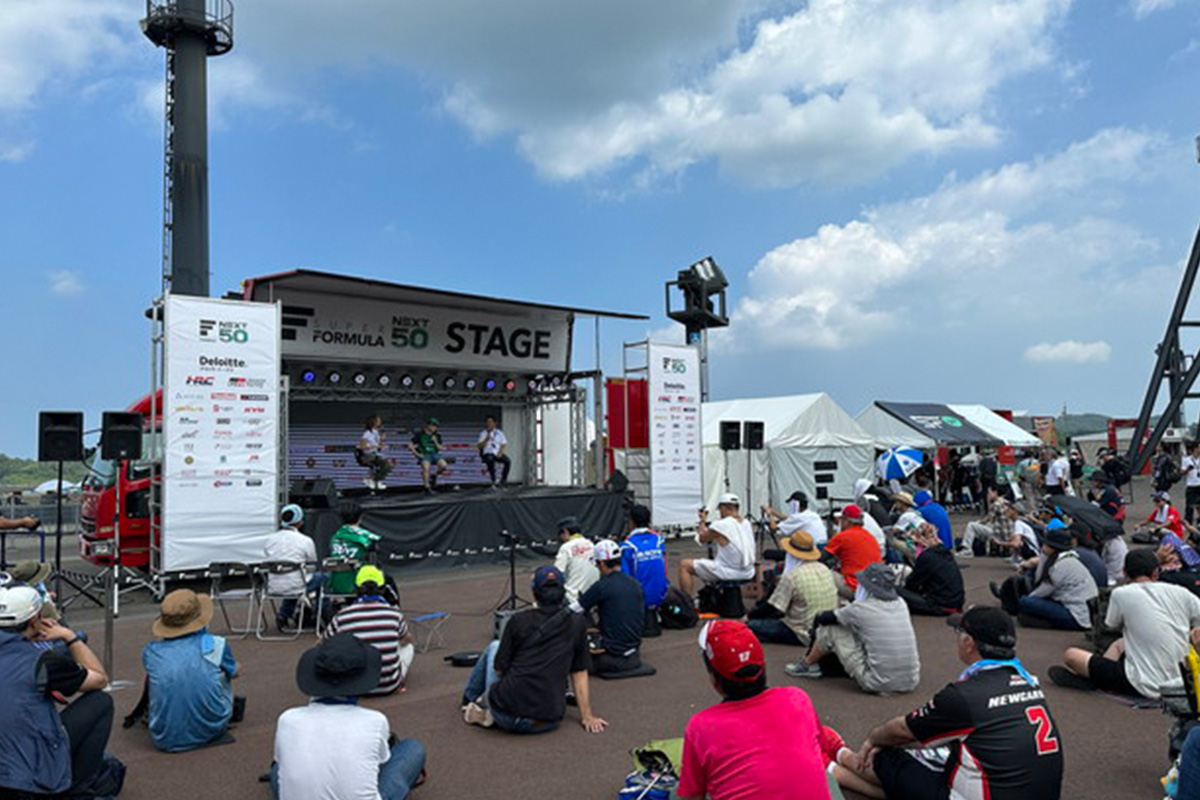 ご来場に感謝しかないです。ほんとパドックよりすんごい暑い…。宮田莉朋選手がこの時はトークショーに出演されていました。オフィシャルステージはコンテンツが毎戦、いろいろ満載でずっとこっち側にいても楽しいだろうなあと思っております。