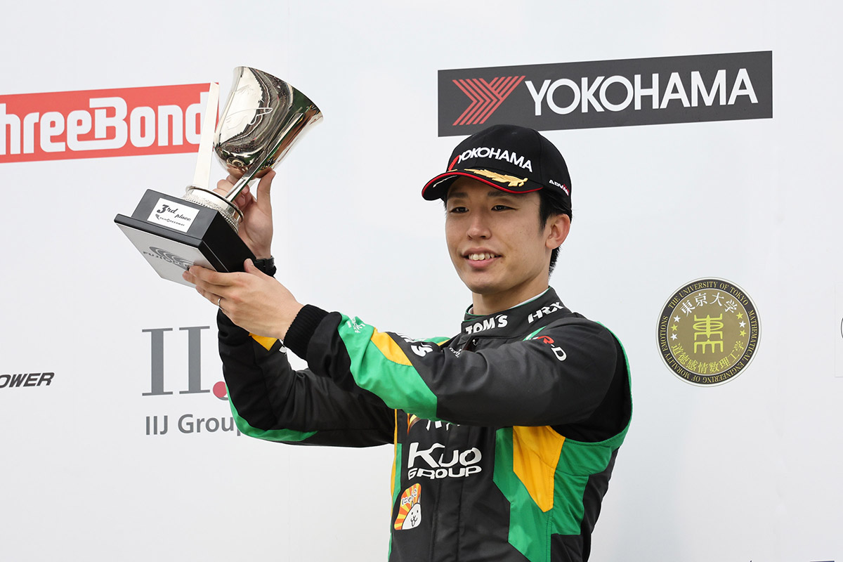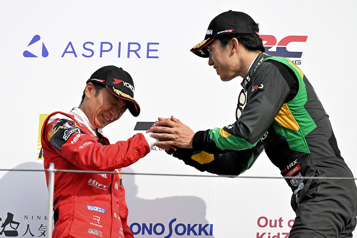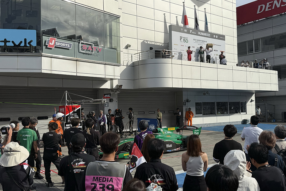 表彰式で珍しく小枝エンジニア(VANTELIN TEAM TOM’S)の姿が、ポディウムの下に。わたしは、世界のカテゴリーみたいに優勝したらメカのみんながポディウムの下まで来ればいいのになあと思っていました。国内は見ているとあまりそういう時間がない。祝っていないでとっとと片付けろとまで行かないにしても、何か手を止めて祝う風潮がないと感じていたのでとても微笑ましかったです。これからはこうするみたいです。勝ちに慣れていたとしても、大事だよね。