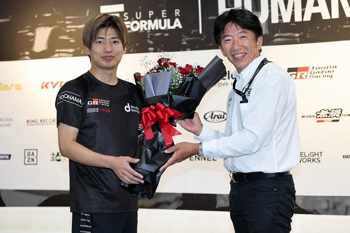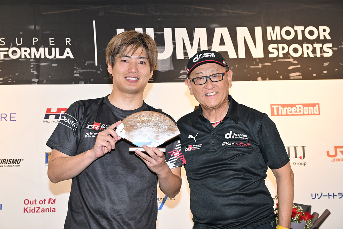 チームオーナー(docomo business ROOKIE)のモリゾウさんは、会見の終わりに日本自動車会議所 豊田章男会長としてサプライズとして登場。コメントは、チームオーナーとしてまたお話をしてくださいました。ど素人チームを…と呼んでおりましたが、プロスポーツ界にデビューした以上、チームのここまでの努力も並々ならぬものがあったと絶対に思っています。信念を持って彼らが携わって来たことが、彼らの頑張りから見て取れます。