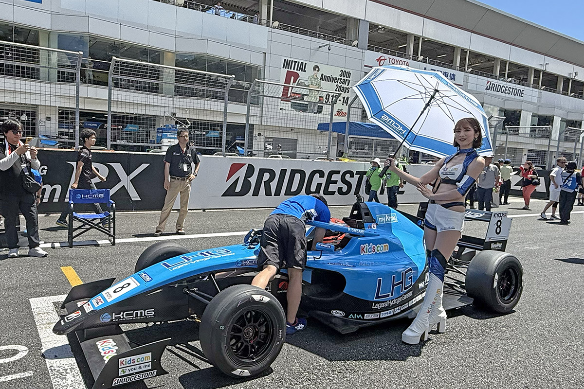 予選TOP3の会見のあとピットウォークを経て、併催のKYOJO CUPのグリッドに少し顔を出して見ました。とても華やかですよね。フォーミュラカーに今年車両が変更となり、かっこいいんですよね。これが。バトルなかなか激しいので引き込まれました。