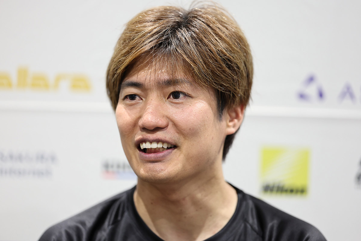 レースが終わってから、100戦記念の記者会見が行われるというので、大嶋和也選手の登場をブリーフィングルームで待ちました。