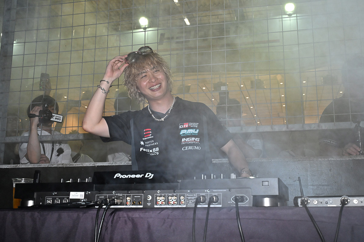 そして、大湯都史樹選手!ご自身のクルマを持ち込んでドリフトも披露。エンターテイナーですね。ここからのお待ちかね(死語かしら)の大湯DJが登場。私、DJ楽しみにしていました。No music no lifeなので。最初のちょっとしか見られてませんけどね。