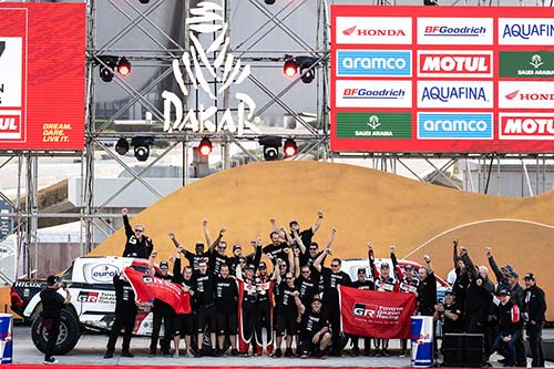 チームにとって最高の日です! ダカールで勝つというだけでも大変なことですが、この世界一タフなラリーで2連覇できたというのは本当に驚異的です。全てのチームメンバー、パートナーの皆様、そして、もちろんドライバーとコ・ドライバー、この素晴らしい結果をもたらしてくれた全ての方に感謝いたします。GRダカールハイラックスT1+は、世界一過酷な自動車レースで勝てるというだけでなく、2年連続でそれを達成できるだけの信頼性と耐久性を持っているということを改めて示せましたし、本当に誇りに思っています。