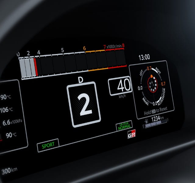 12. 3インチフルカラーTFT*メーターを採用。プロドライバーの意見を取り入れながら、スポーツ走行に必要な視認性と車両情報にフォーカスしている。