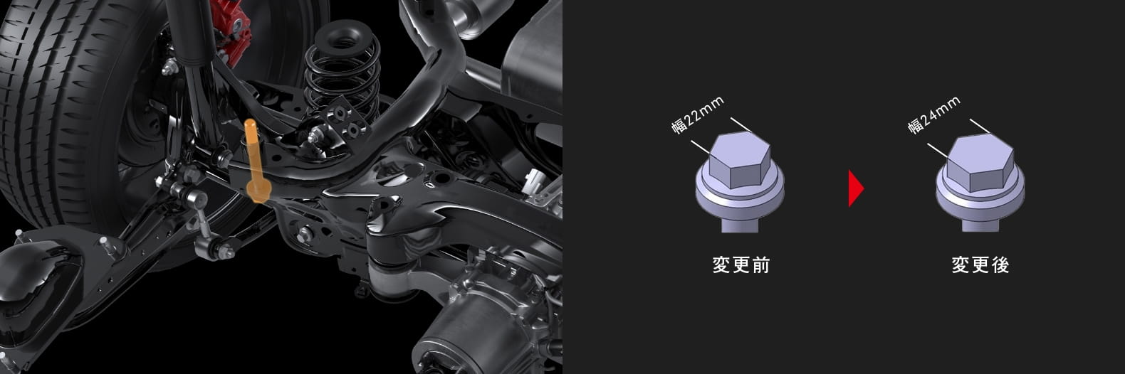 ボルト頭部サイズを拡幅(リヤサスペンションメンバー×ボディ)