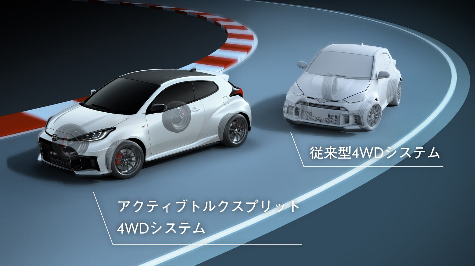 304PS、400N・mのハイパワー1.6Lターボエンジン。さらには、ラリーで鍛えたスポーツ4WD、GR-FOUR。