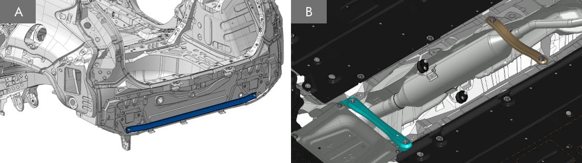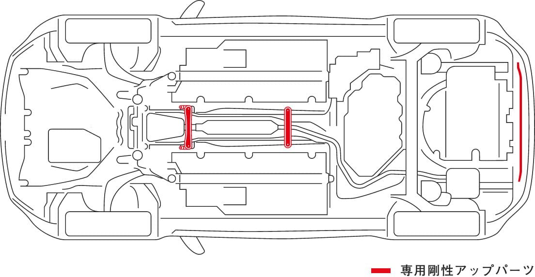 ベース車の高いボディ剛性をより高水準なものにするため、フロア下とロアバックにブレースを追加。操縦安定性の向上とフラットな乗り心地に寄与します。