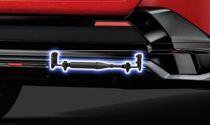 空気の流れをコントロールするエアロパーツのデザインにより、ハンドリングと乗り心地の双方をレベルアップ。