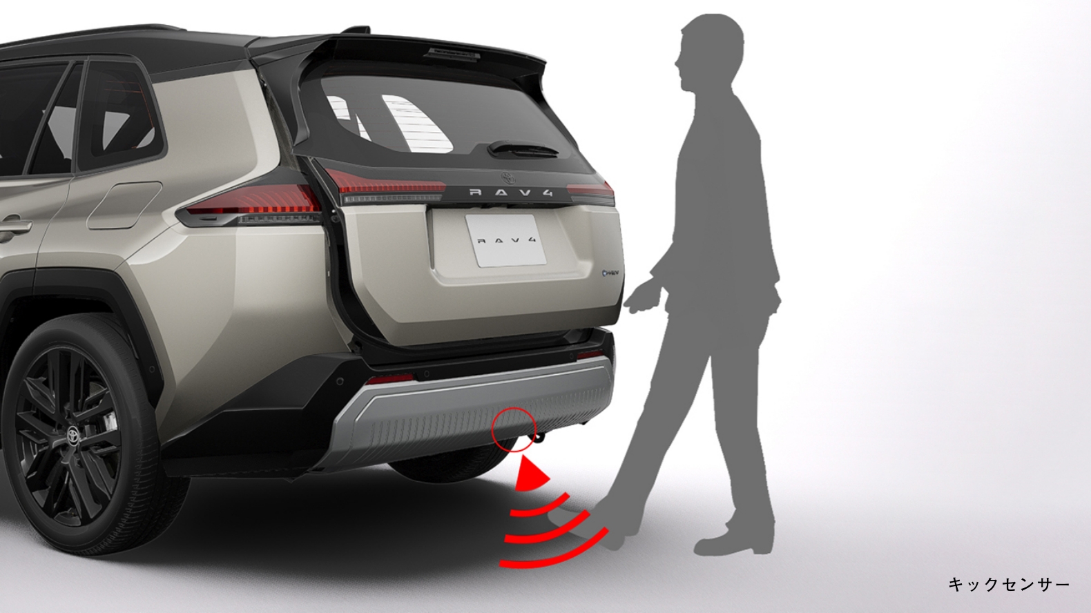 スマートキーを携帯していれば、リヤバンパー中央の下に向かって足を出し入れするだけで、バックドアが自動開閉します。