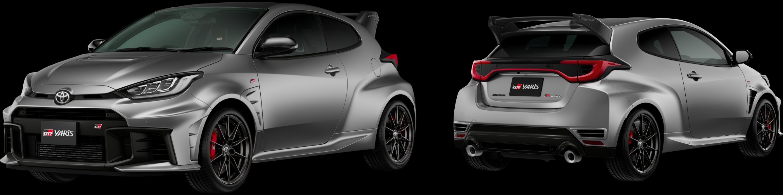 ●225/40ZR18タイヤ(ミシュラン Pilot Sport 4S)×BBS製8Jインセット45mm鍛造アルミホイール(メタルスターグロスブラック塗装/センターオーナメント付) ●フロント:18インチアルミ対向4ポットキャリパー(高μパッド)+スリット入りスパイラルフィン式ベンチレーテッド2ピースディスクブレーキ リヤ:16インチアルミ対向2ポットキャリパー(高μパッド)+スリット入りベンチレーテッドディスクブレーキ ●カラードキャリパー(レッド/GRロゴ付〈フロント・リヤ〉) |
