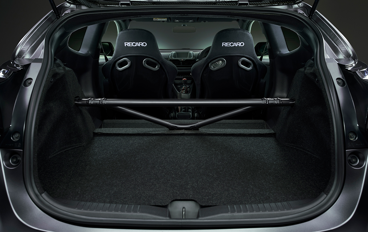 レース活動からのフィードバック技術として、骨格となる軽量ボディを超高剛性化。545点におよぶスポット溶接の増し打ちをはじめ、構造用接着剤の使用箇所を延長するなど、部品同士の結合剛性を大幅に向上させている。また、エンジンフードやルーフには新工法のカーボン材を採用するなど、軽量設計を徹底。ボディ全体を磨き上げることで、モータースポーツに求められるハンドリング性能とスピードを追求している。