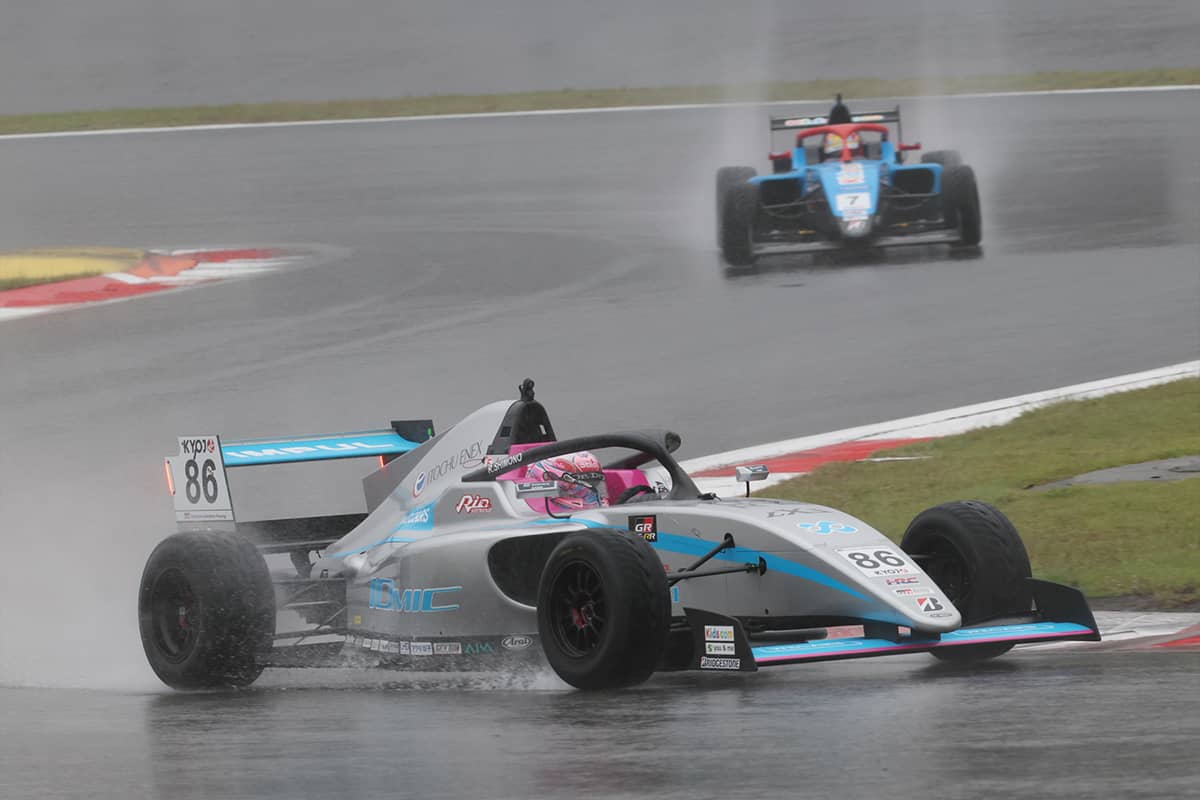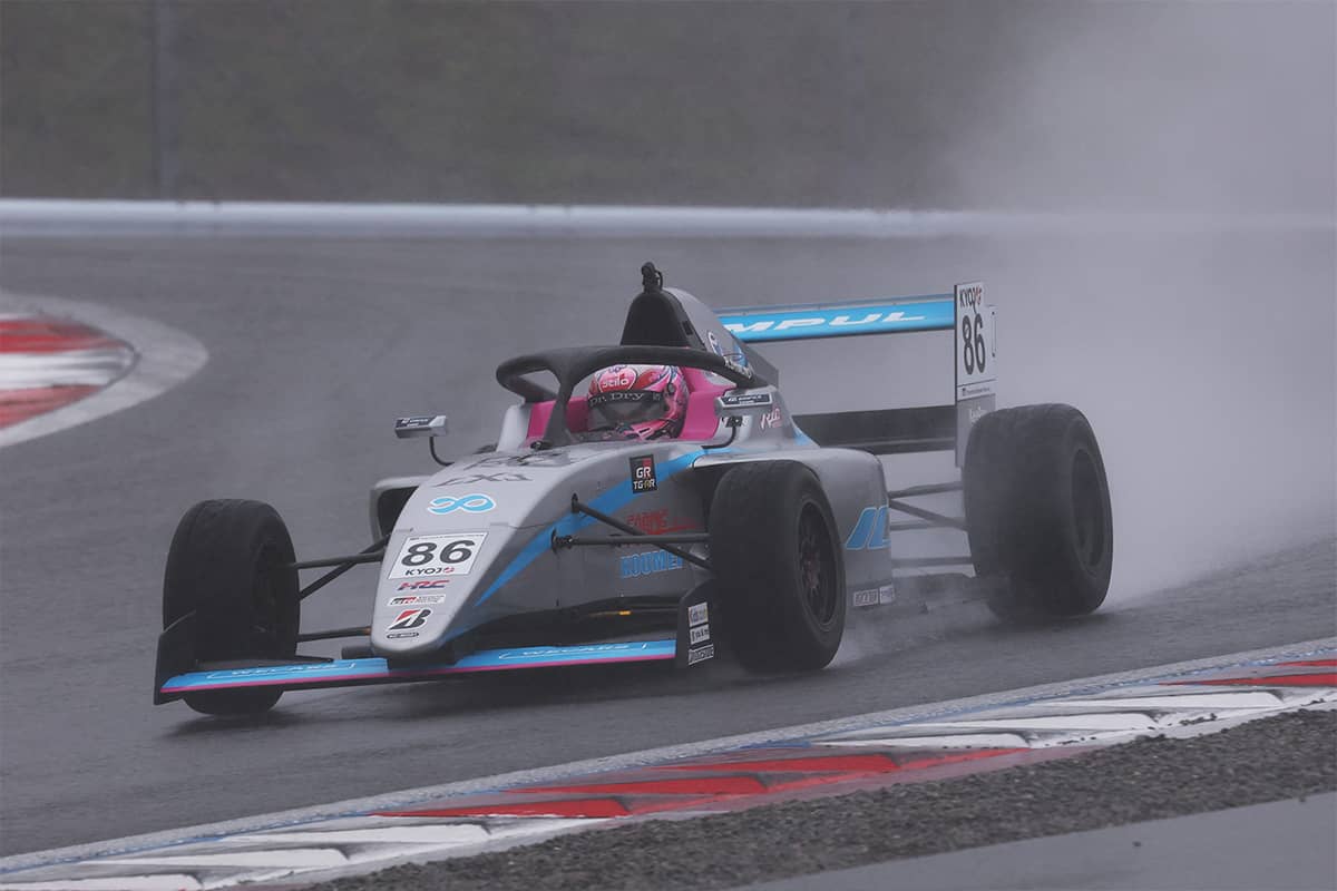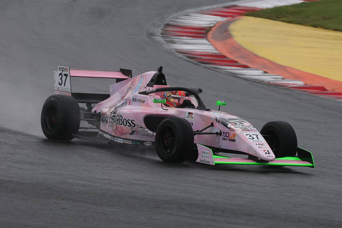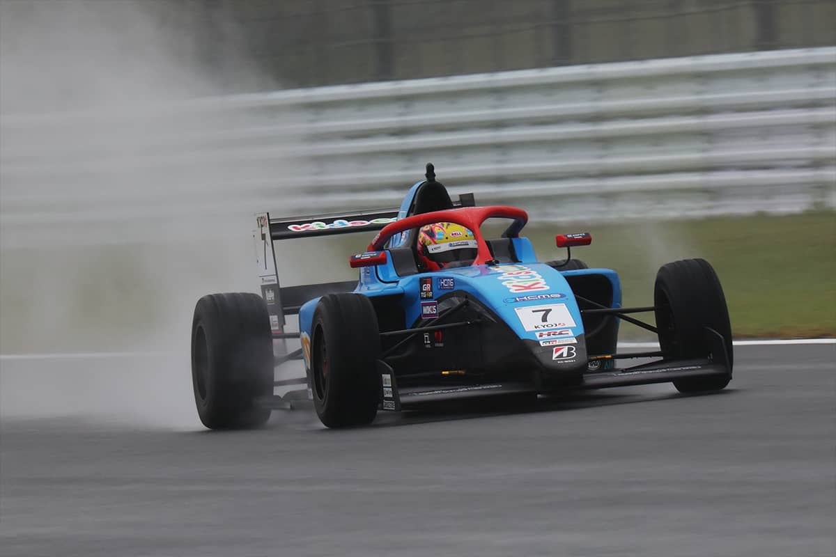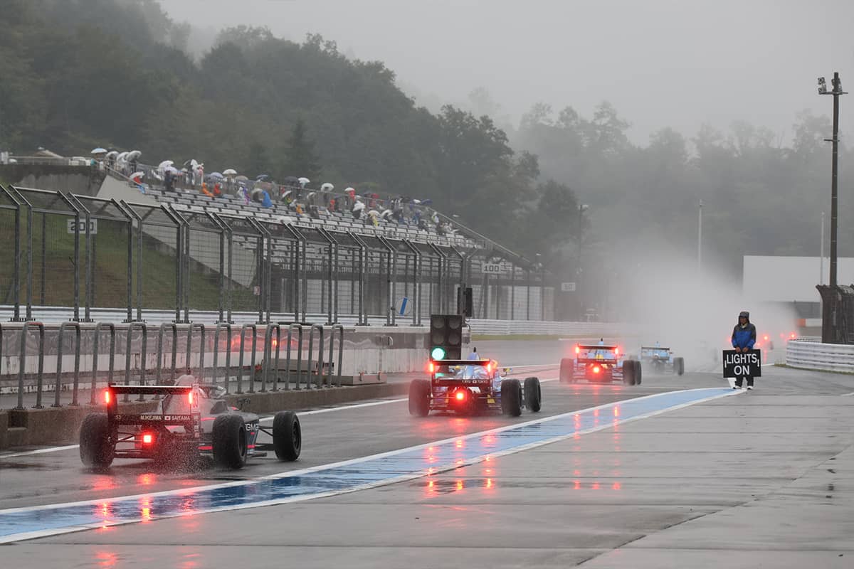 雨は本降りとなり、サーキット全体に霧が立ち込めるなか行われた10周のKYOJO Sprintは、13時05分にセーフティカーの先導で開始され、4周目に実質のスタートが切られた。