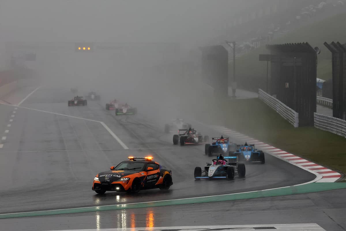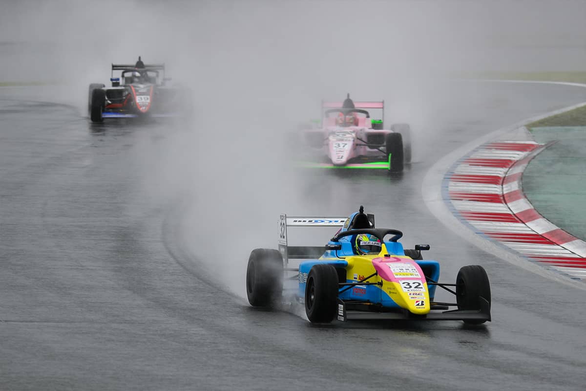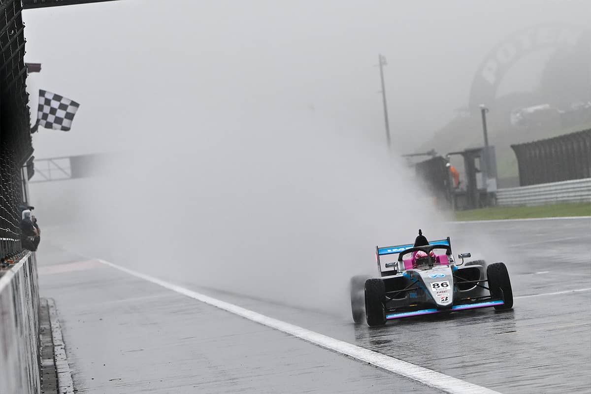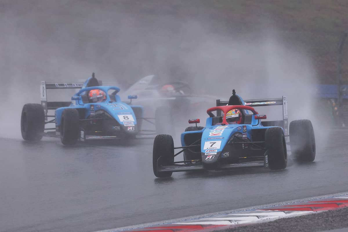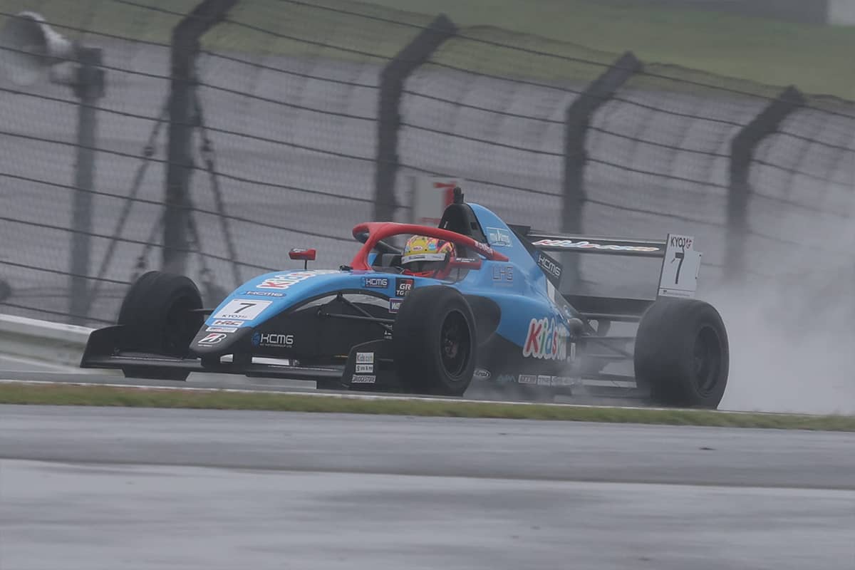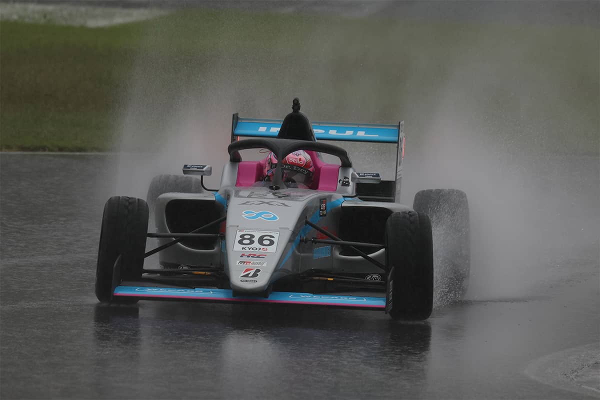 雨は本降りとなり、サーキット全体に霧が立ち込めるなか行われた10周のKYOJO Sprintは、13時05分にセーフティカーの先導で開始され、4周目に実質のスタートが切られた。