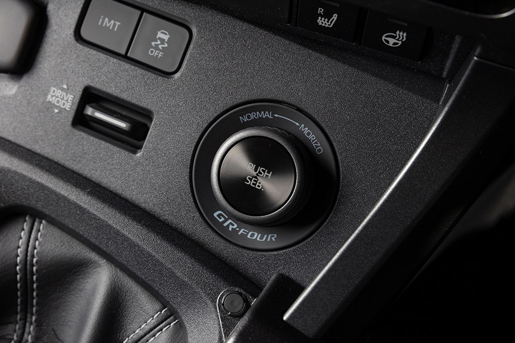 また、ベース車の「GRAVEL」モードと置き換える形で「MORIZO」モードを備えています。トラクション性能と旋回性能を高い次元で両立させるため、加速時は前後輪の拘束力を最大(直結)とし、制動時は必要分だけ拘束を緩める四駆制御モードです。モリゾウこと会長の豊田がラリーで走り込んで導き出した駆動力配分をオジエ選手が気に入り採用に至りました。