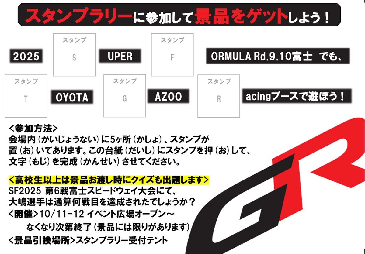 スーパーフォーミュラ 第9,10戦富士スピードウェイに「TOYOTA GAZOO Racingブース」がオープン!