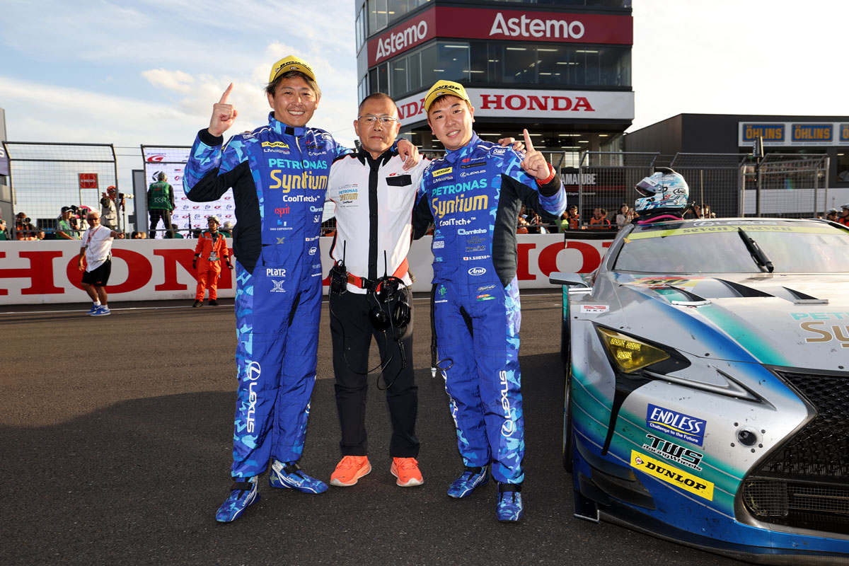 久しぶりの優勝は本当に嬉しいです。このスポーツランドSUGOは僕らが今年から導入したLEXUS LC500と相性がいいと思っていた中、本当に今回ダンロップさんのタイヤも素晴らしくて、吉本選手の予選があって、本当にいいレースができたと思います。最後は56号車に迫られて苦しかったんですけれども、もう予選よりプッシュしてるんじゃないかというくらい一生懸命走りました。鈴鹿のことがあったんで、本当にリベンジというか、3週間くらい本当に落ち込んでいたので、チームの皆と、この喜びを共有できて本当に嬉しいです。たくさんの応援ありがとうございました。オートポリスも引き続き頑張ります。