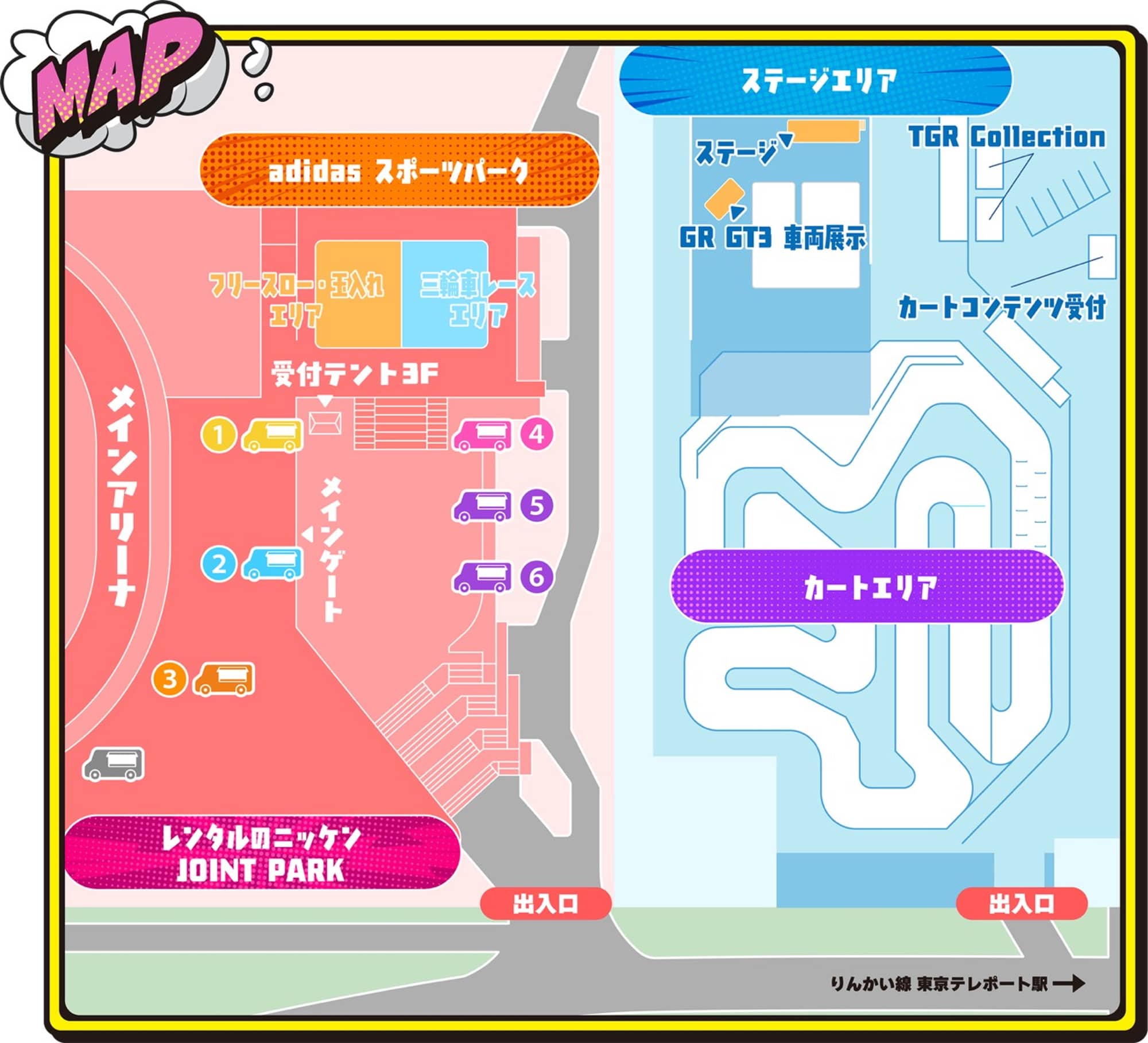 | 場所 | トヨタ東京アリーナ3階 MAPの『受付テント』にて参加申し込みを行います。 |