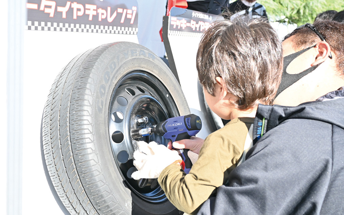 タイヤのナット外し体験!ルーレットを回し、出た色と同じ色のボルトを当てよう!