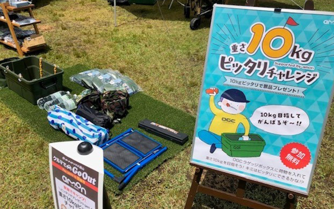 カー用品展示や重さ当てチャレンジなどを実施します。