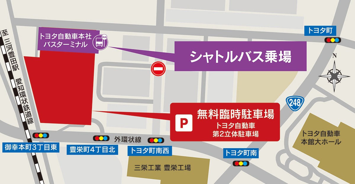 トヨタ自動車本社・新豊田駅発着の「無料シャトルバス」をご利用ください。