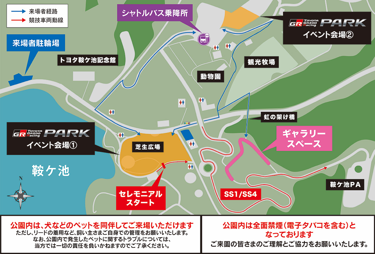 ●TOYOTA GAZOO Racing PARK会場内及び駐車場内での自転車・キックボード・スケートボードの使用や、他のお客様のご迷惑になる行為、公序良俗に反する行為を禁じます。
