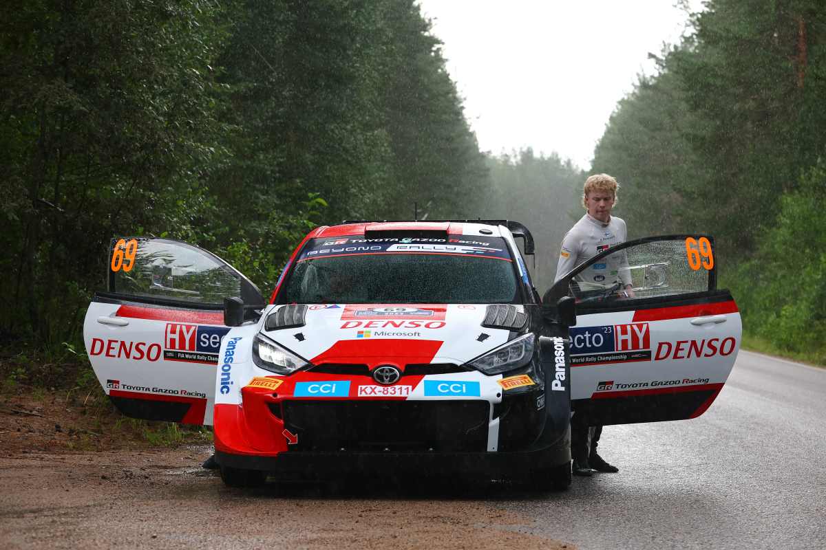 ロバンペラがクラッシュした場所は右、左と連続する比較的道幅の狭い中高速コーナーで、ロバンペラは右コーナーをドリフトしながら抜けたところでバランスを崩し、次の左コーナーに入っていくことができずにコースオフ。木に激しく当たって前転し、ルーフが下になった状態でストップした。クルマのダメージはロールケージにまで及んでいたといい、そのため車両の修復ができず競技続行は不可能に。ロバンペラはリタイアとなり、選手権リーダーはまさかのノーポイントでホームイベントを終えることになった。