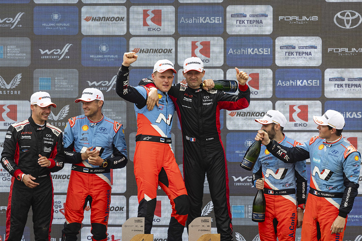 土曜日、戦いの舞台がドイツ、オーストリアに移ると上位争いはさらにヒートアップ。チャンピオンシップリーダーのヌービルを、僅差でオジエが追う展開になった。ポイント差を考えれば大きなリスクを冒す必要がないヌービルに対し、逆転タイトルの望みをラリージャパンに繋ぎたいオジエは全力でアタック。ヌービルのほうがはるかに余裕を持って戦える状況だったが、土曜日に大きなミスを犯したのはヌービルだった。ヌービルは午前中のSS11でコースから2回飛び出し、30秒以上を失い総合4位まで順位を下げたのである。しかし、だからといってオジエが楽になったわけではなかった。背後に、やはりドライバーズタイトル獲得のチャンスを残すヒョンデのタナックが迫っていたからだ。そしてラリーはそこから最終日まで、競技を離れれば良き友人関係にある、ふたりの元世界王者による熾烈な戦いが続いた。