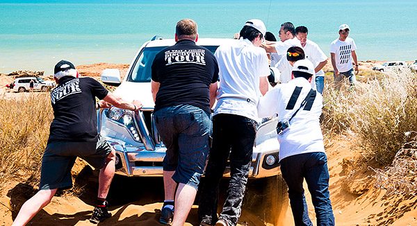 プロの評価ドライバーたちに続き、帯同している現地クルーもヒルクライムに挑戦したが、高機能・高性能を誇るランクル200でさえ何台かはスタックするほど難易度が高い。柔らかい砂の傾斜に起きるスタックは、前進が困難になるだけではない。無理に脱出しようとしてアクセルを踏み続けると、路面が掘れバックすることも難しくなる。つまりは、その場からまったく動けなくなってしまうことを意味している。